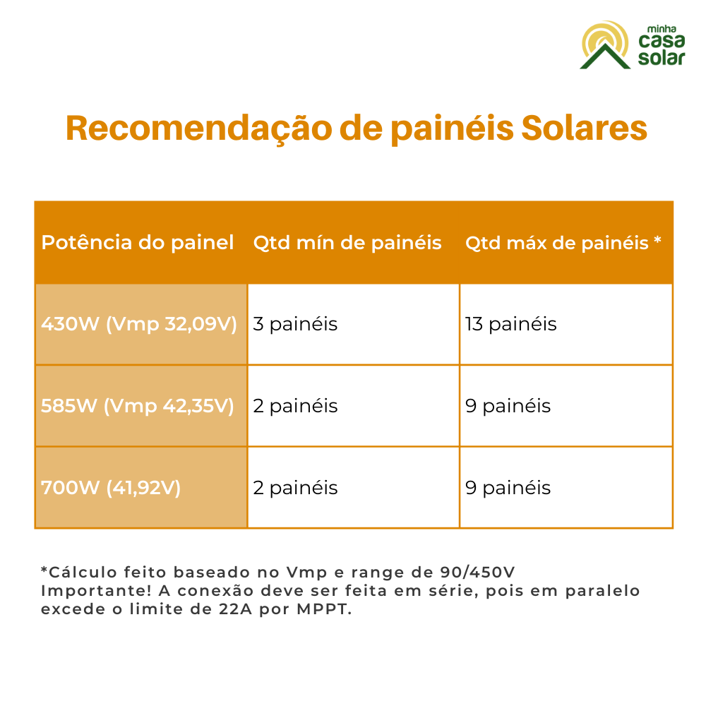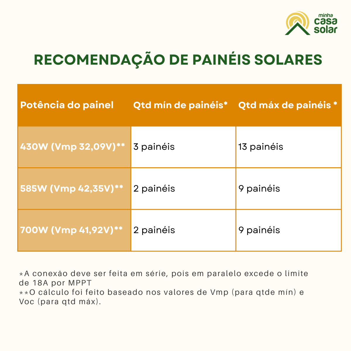 Verifique na tabela abaixo qual o range de operação do MPPT.