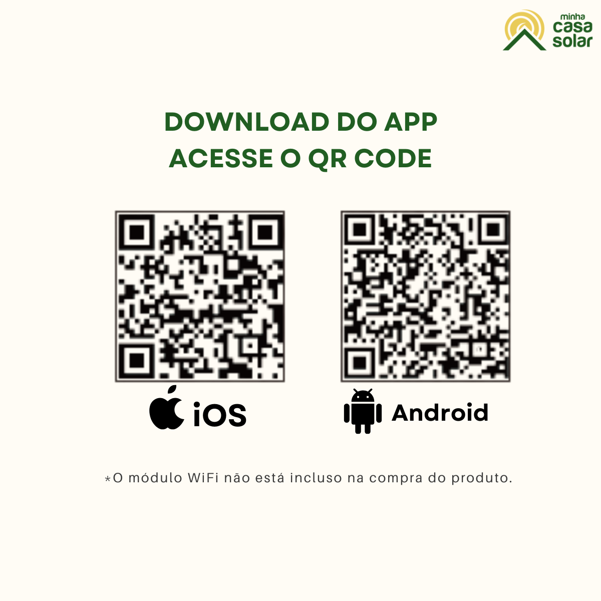 Além disso, o sistema pode ser monitorado remotamente via app Wi-Fi (módulo não incluso), proporcionando maior controle e praticidade. Para instalar o App, acesse o QR code da imagem abaixo!