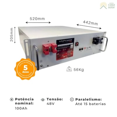1 unidade do Bateria Solar de Lítio 100Ah 4,8kWh 48V Unipower – UPLFP48