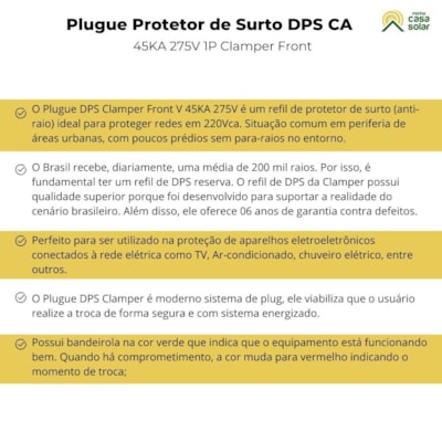 Destaques Refil Plugue p/ Protetor De Surto DPS CA 275V 45kA Clamper